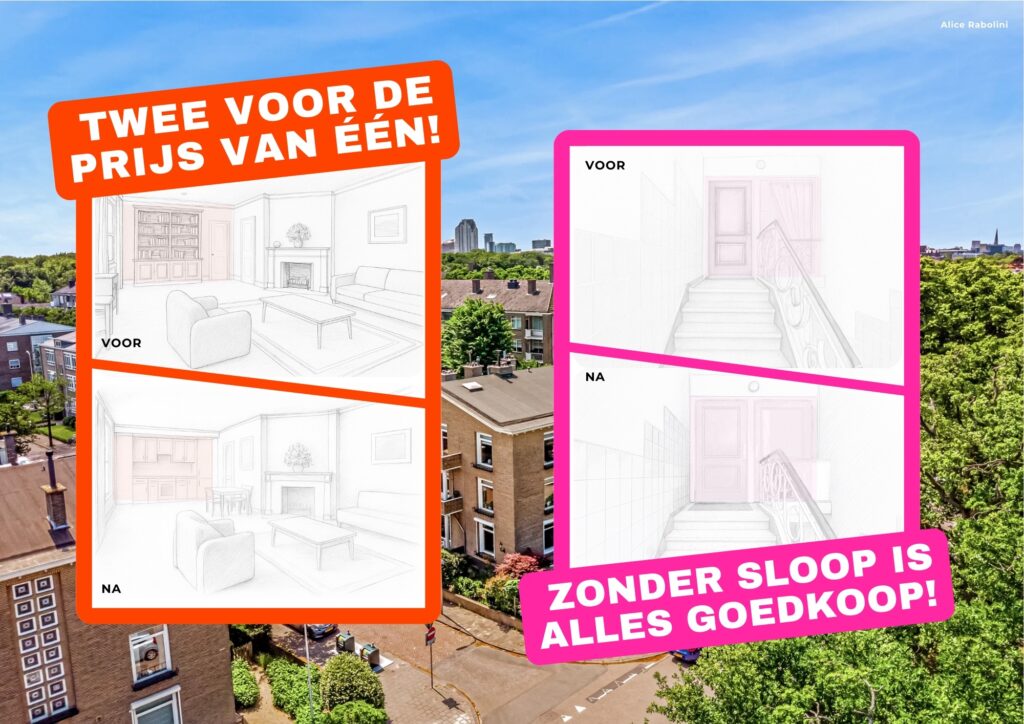 De minimale ingrepen en het lage materiaalgebruik maken de verbouwing energiezuinig en extreem kostenefficiënt. Door een slimme ruimtelijke splitsing kan er met minimale impact dubbel worden genoten. Met onze creativiteit zouden we de beschikbare leefruimte in Nederland kunnen verdubbelen!