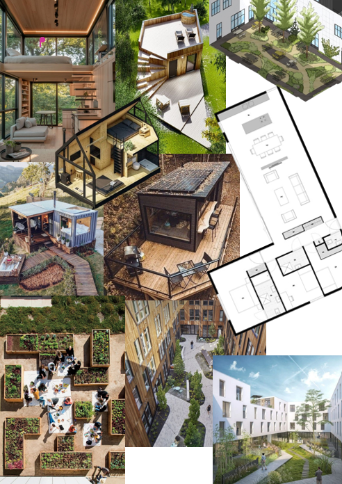 In de gezamenlijke tuin staan 4 Tinyhouses. Deze 4 aparte woningen hebben een eigen voordeur aan de achterkant van het woonblok. De bewoners van deze woningen hoeven dus niet via de gezamenlijke tuin hun huis te betreden. De gezamenlijke tuin is te verlaten via de eigen woning of via de poortdeur. In de tuin is er plek voor eigen invulling.